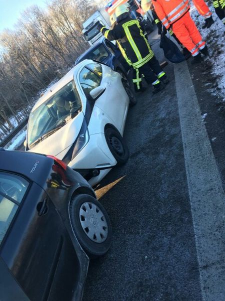 Verkehrsunfall A96, Lindau-München, km 151. Absichern der Unfallstelle durch die Feuerwehr.