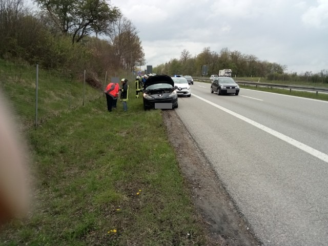 Verkehrsabsicherung eines brennenden PKW’s, A96, Fahrtrichtung Lindau-München, km 151