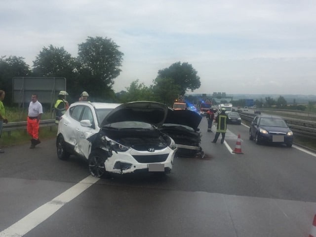 VU, A96, km 144, Lindau-München, Person eingeklemmt, mehrere PKW’s. Verkehrsabsicherung durch die Feuerwehr Steinebach-Auing