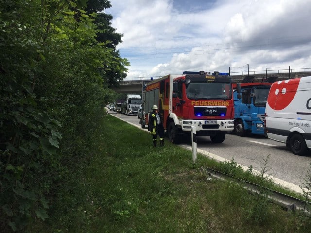 A96, Verkehrsunfall mit PKW im Baustellenbereich, Verkehrsabsicherung, Fahrtrichtung Lindau-München, km 154