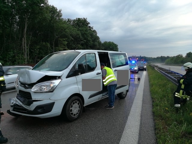 Verkehrssicherungsmaßnahmen, A96, Lindau-München, km 152, nach Verkehrsunfall mit zwei Fahrzeugen.