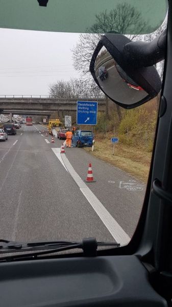 Verkehrsunfall A96, Fahrtrichtung Lindau-München, km 152, Absicherungs- und Reinigungsarbeiten 16. November 2017