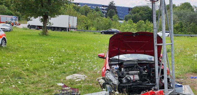 2 Personen nach VU verletzt , Beschilderung der BAB beschädigt inkl. Verkehrsleiteinrichtung