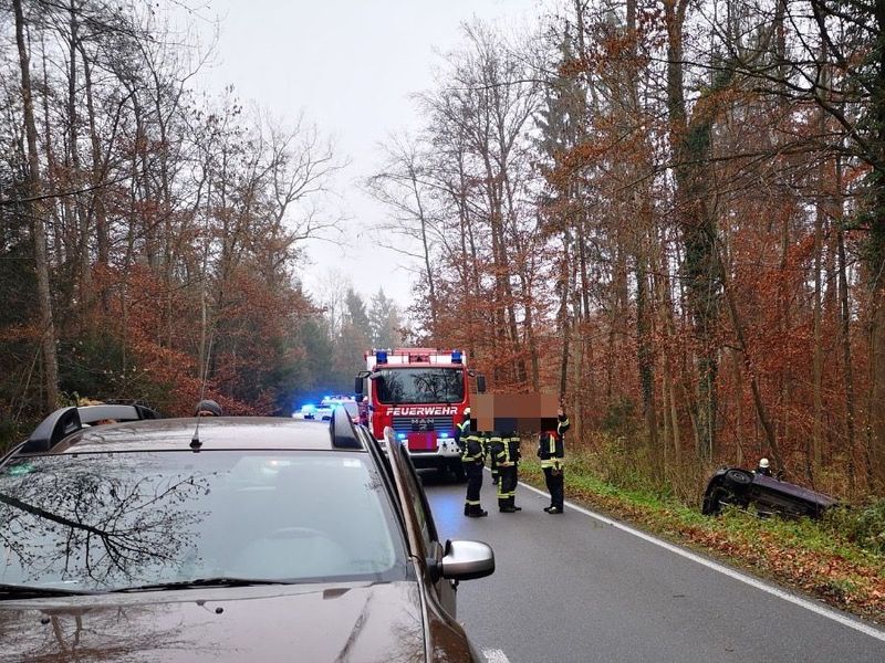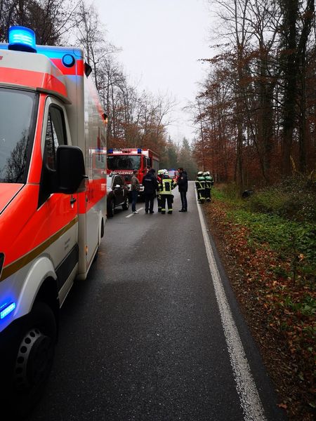Verkehrssicherungsmaßnahmen Verkehrsunfall mit eingeklemmter Person.