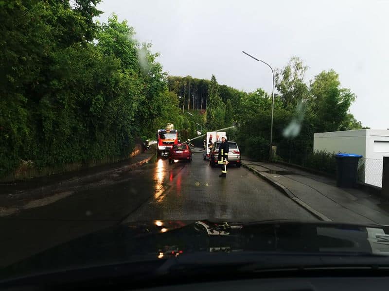 Wiedermal an bekannter Stelle der Etterschlager Straße , Höhe Hausnummer 69, musste die Straße durch abpumpen von Wassermassen befreit werden.