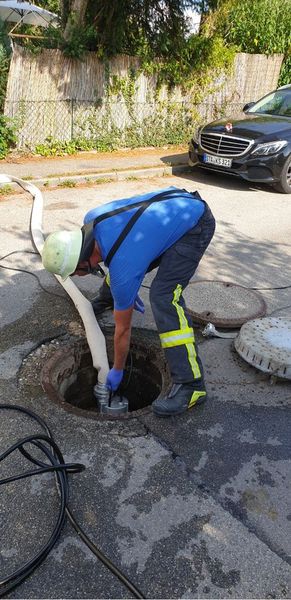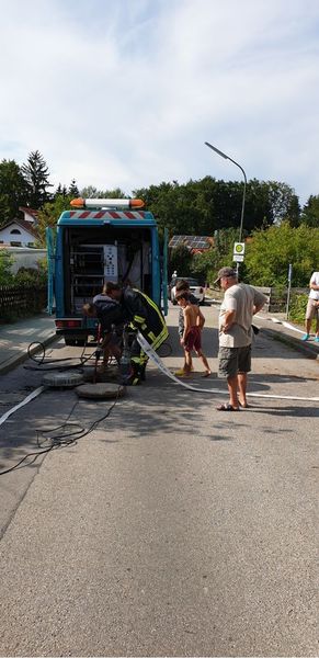 Abwasserrevisionsschacht durch Rollkies verstopft, dieses führte dazu, dass sich das Abwasser in einem weiteren Revisionschacht staute und durch den entstandenen Überdruck in zwei Häuser drückte. Die Feuerwehr Steinebach-Auing half der AWA bei der beseitigung der Verstopfung und pumpte im Anschluss das eingedrungene Abwasser unter Atemschutz ab. Problematik war das in einem Haus durch das Wasser die Heizöltanks auftrieben, diese haben wir gegen Umfallen und Auslaufen gesichert.