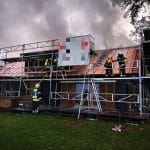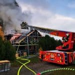 Nachalarmierung der Feuerwehr Herrsching zu einem Wohnhausbrand in Herrsching. Dort hatte sich der Brand bereits um ca. 3.00h in der Nacht ereignet. Nachdem es sich hier um ein Holzhaus handelte, welches auch noch mit einem Blechdach gedeckt war, gestalteten sich die Löscharbeiten besonders schwierig. Durch die kräftezehrenden Löscharbeiten wurden etliche Feuerwehren mit Atemschutzgeräteträgern sowie das THW mit einem Bagger zur Unterstützung, nachalarmiert. Wir möchten uns bei der Feuerwehr Herrsching für die perfekte Zusammenarbeit, sowie die Verpflegung der Einsatzkräfte besonders bedanken.