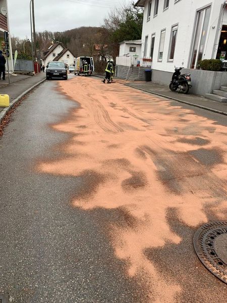 Einem Lebensmittelverwerter ist ein 60L Fass Frittieröl umgekippt und auf die öffentliche Straße gelaufen. Wir haben gemeinsam mit der FW Etterschlag das ausgelaufene Öl gebunden und die Straße gereinigt.
