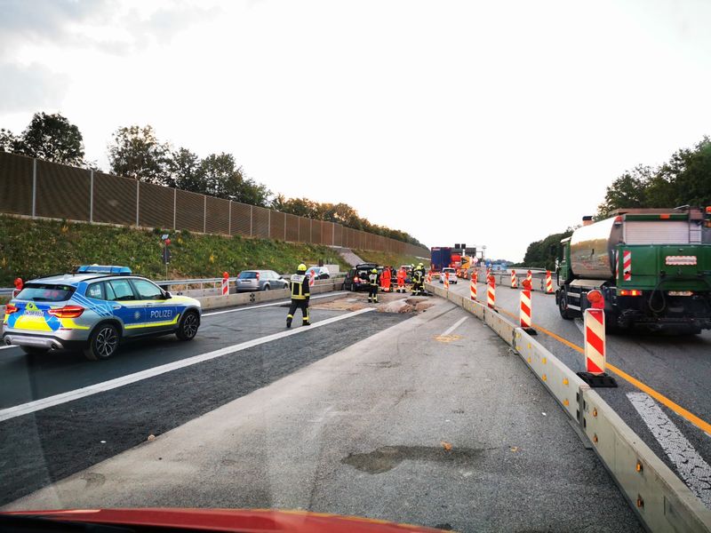 VU, A96, km 155, Fahrtrichtung München, Verkehrsabsicherung. Für die Feuerwehr Steinebach vor Ort kurzfristig abbestellt.