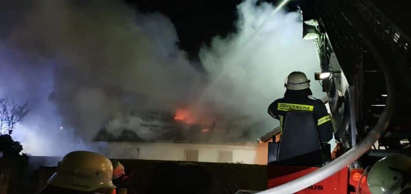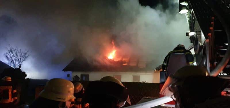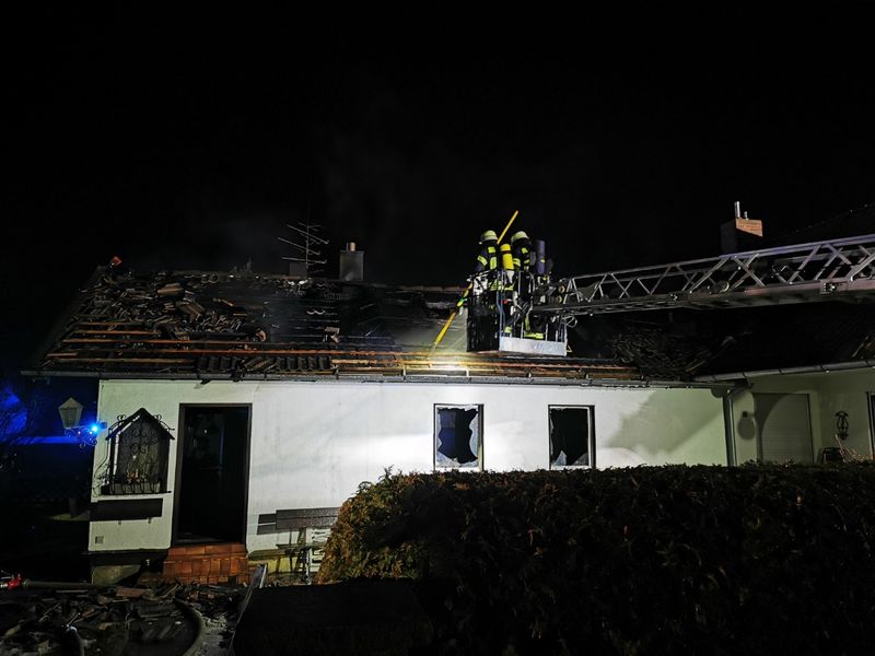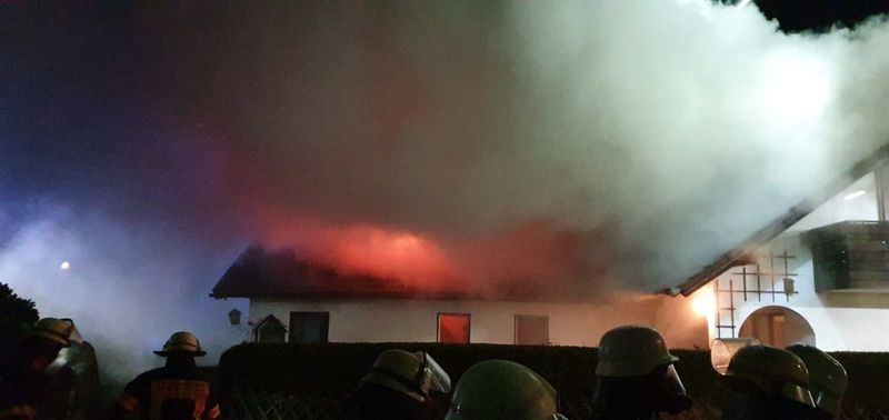 Vollbrand Wohnhaus, ohne Personen in Gefahr. Im Einsatz waren mehrere umliegende Feuerwehren, von der Feuerwehr Steinebach-Auing das TLF,LF und MZF. Zahlreiche Atemschutzgeräteträger waren ebenfalls im Einsatz. Zum Löschen des Brandes wurden mehrere Brandabschnitte gebildet. Zusätzlich wurden zahlreiche Wehren aus der Umgebung nachalarmiert, nachdem sehr schnell festgestellt werden konnte, dass weitere Atemschutzgeräteträger notwendig waren.