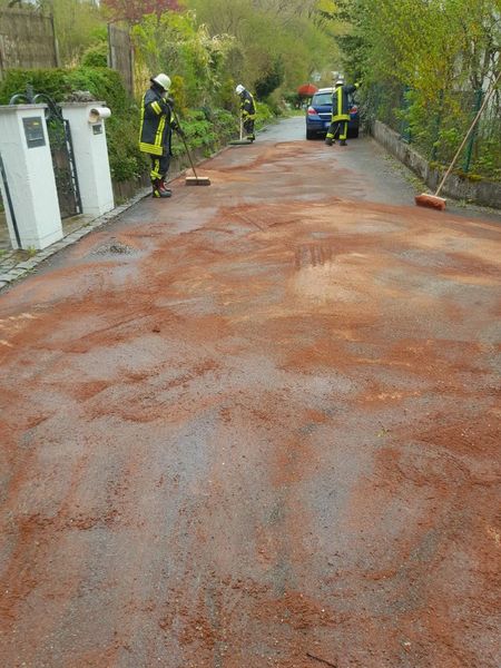Die Feuerwehr Steinebach-Auing wurde alarmiert zu einer ca 30m langen Ölspur. Wir haben das austretenden Öl mit Ölbinder gebunden und konnten nach ca 2std die Straße wieder freigeben.