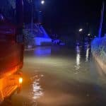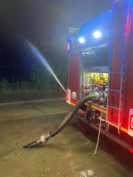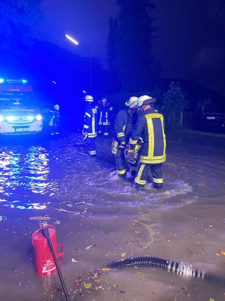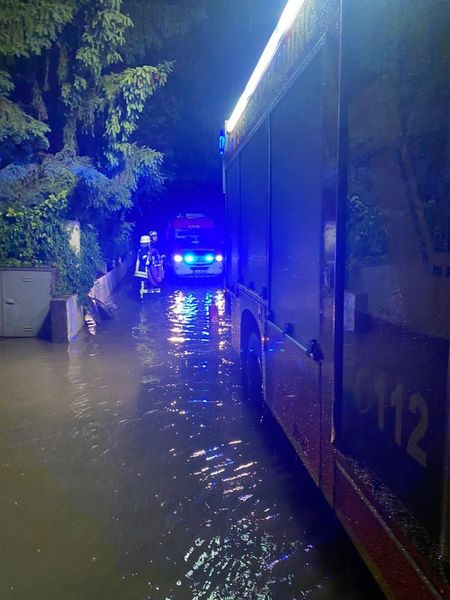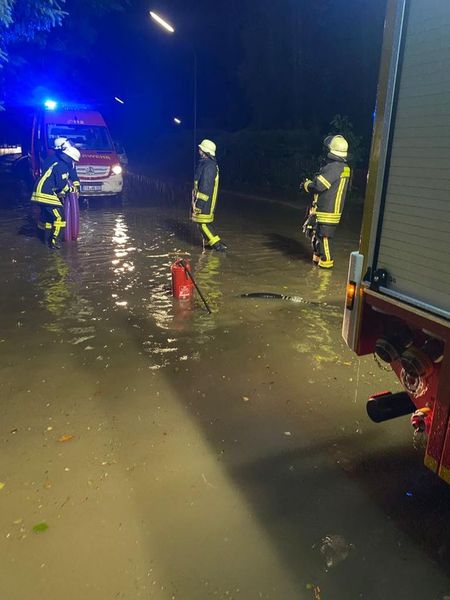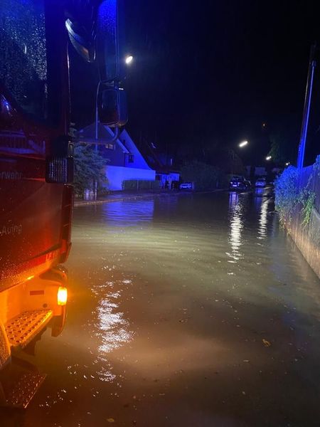 Straße ca 50cm unter Wasser. Wasser abgepumpt