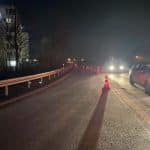 Verkehrsabsicherung mit Steinebach 11/1 und Vorwarnanhänger auf der A96. Zugleich Sperrung der Autobahnauffahrt Oberpfaffenhofen Richtung München durch unser TLF Steinebach 20/1.