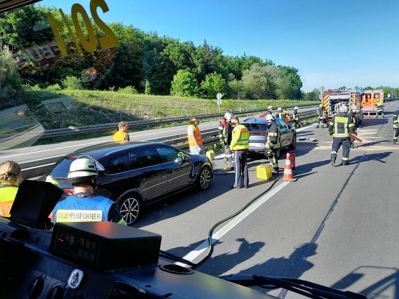 VU- Auffahrunfall 3x Leicht, 2 Personen den Rettungsdienst übergeben . Betriebsstoffe binden und Verkehrssicherung durchgeführt .