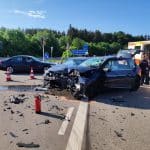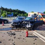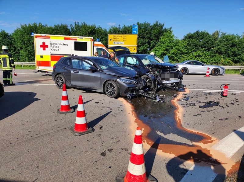 Verkehrsunfall mit PKW 1. Juni 2022 VU auf der Autobahnbrücke Auffahrt BAB 96 mit zwei PKW. Zwei verletzte Personen