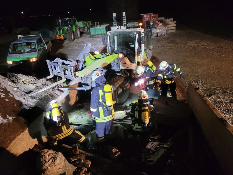 Einsatzübung: Baustellenunfall an Gasleitung mit mehreren Verletzten und eingeklemmten Personen.
