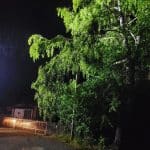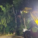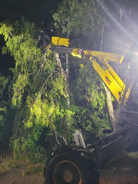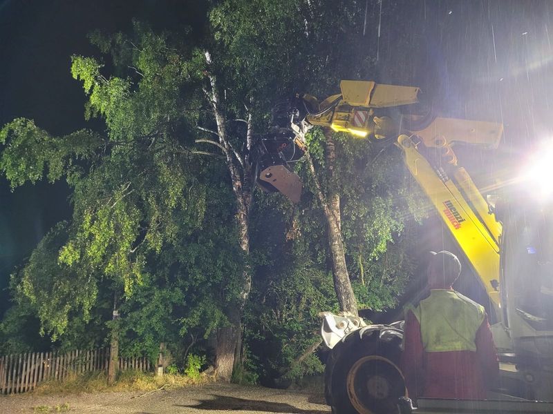 Abgebrochener Ast über Brücke am Birkenwegbadeplatz drohte zu fallen. Wurde mit Schreitbagger von Baumgärtner Agrar beseitigt.