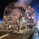Brand LKW, A96, Fahrtrichtung Lindau München, km 144. Die Feuerwehr Steinebach-Auing wurde zur Verkehrssicherung alarmiert und unterstützte bei der Brandbekämpfung unter schwerem Atemschutz sowie bei der Wasserversorgung der FFW Inning. Im Einsatz waren Steinebach 20/1 (TLF), Steinebach 11/1 (MZF), sowie der Vorwarnanhänger (VWA). Nach ca. 2,5 Stunden konnte die Feuerwehr wieder abrücken.