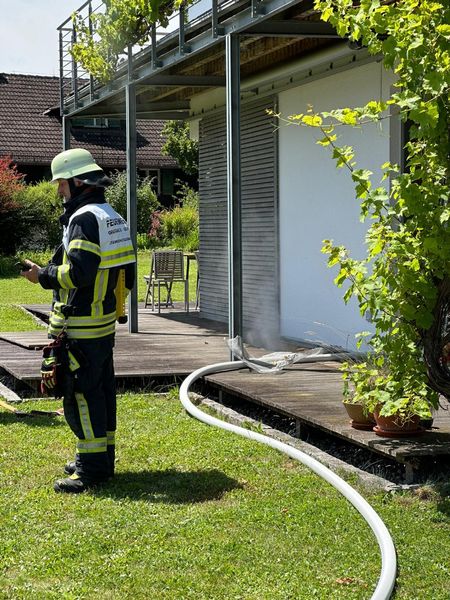 Vermutlicher Brand im Heizungskeller. Erkundung unter PA und Strahlrohr des Heizungsraumes, Rauchvorhang gesetzt. Bei der Erkundung stellte sich heraus, dass es an einem Überkochenden Solarthermieüberdruckgerät lag. Der Rauch und der geruch kam vom Wasser mit dem Kühlmittel. Haus wurde belüftet und danach an Eigentümerin übergeben. Eigentümerin hat Sanitärler informiert. Wasserversorgung durch Steinebach 20 und 43. Drehleiter Oberalting in Bereitstellung gebracht. Oberalting hat mit 2. Trupp unter PA weiteren Rauchvorhang gesetzt und ebenso den heizungsraum untersucht.