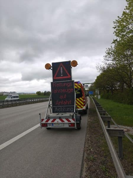 VU A96, unklare Lage, vermutlich Akkus auf Fahrbahn, Verkehrsabsicherung durch Steinebach 11/1