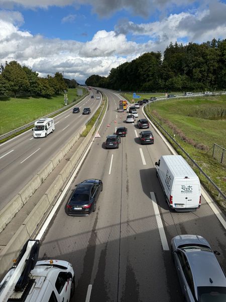 Vollsperrung nach Unfall auf A96. Sperrung und Ausleitung AS Wörthsee mit MZF, Vorwarnanhänger und LF